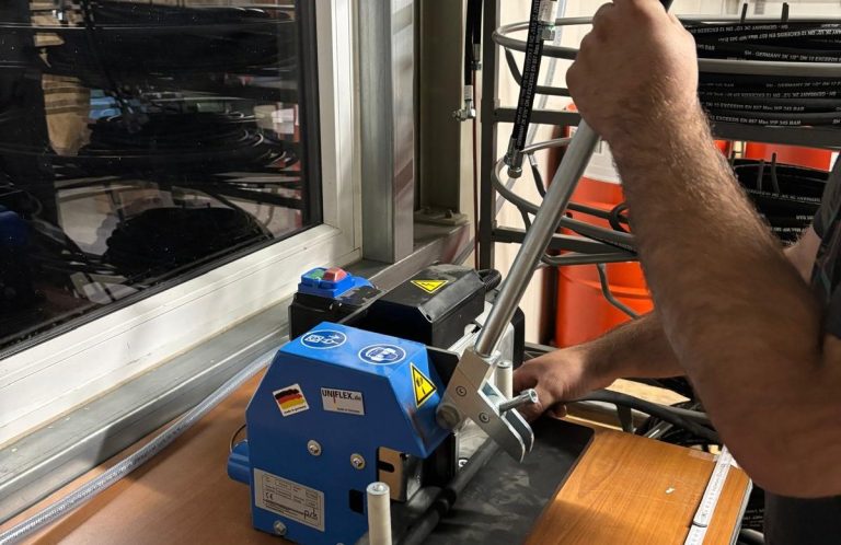Jeder Hydraulikschlauch wird bei uns mit einer individuellen Nummer gekennzeichnet, die in unserem System hinterlegt ist. Dadurch können wir bei einer späteren Reparatur sofort auf alle relevanten Daten zugreifen und den passenden Schlauch ohne Zeitverlust neu fertigen. So garantieren wir schnelle Abläufe, passgenaue Ersatzschläuche und einen direkten Einbau vor Ort. Somit garantieren wir kurze Standzeiten und schnelle Reparaturen.